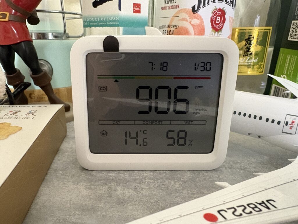 少し前にCO2濃度を測れるセンサーも購入して置いてますが、嫁は全く気にせず高数値のまま換気もしません。